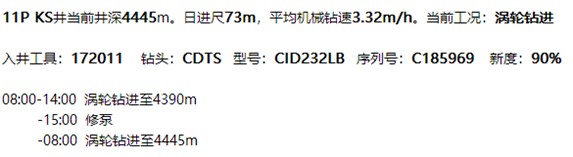 该井作为一口极具挑战性的直井,钻进井段处于 4330 -4735m,地层为下侏罗系,以含云质砂岩为主,井底静止温度高达 180 -200°C,对钻井技术和设备提出了严苛的要求。面对如此恶劣的作业条件,百勤的高速涡轮钻井技术展现出强大的适应性。