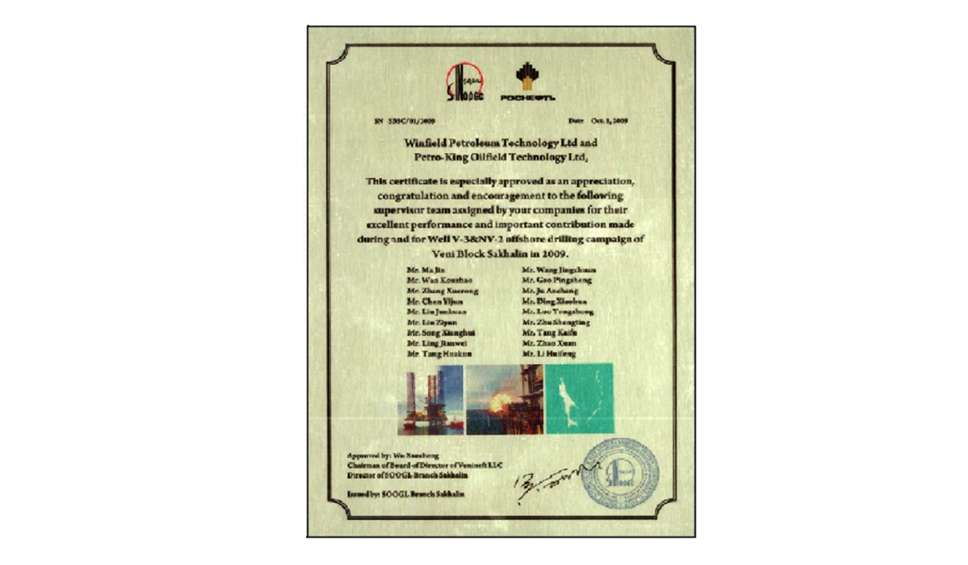 Since Sakhalin project initiation in 2006 Petro-King has provided integrated services four times for Roseneft who is Russia's second largest oil company. Petro-King has completed South Avashi 1, North Veni 1, North Veni 2 and Veni 3 wells with provision of exploration drilling comprehensive services including technical personnel to conduct project management, bidding, contract and procurement, personnel and logistics, drilling, well test and geological design. Petro-King has also provided wellheads, liner hangers, drill bits, casing, tubing, cementing accessories and on-site services. The project set a record to complete two wells in a single operation season in a high latitude & cold sea region and achieved an important oil & gas exploration discovery in north Veni block.