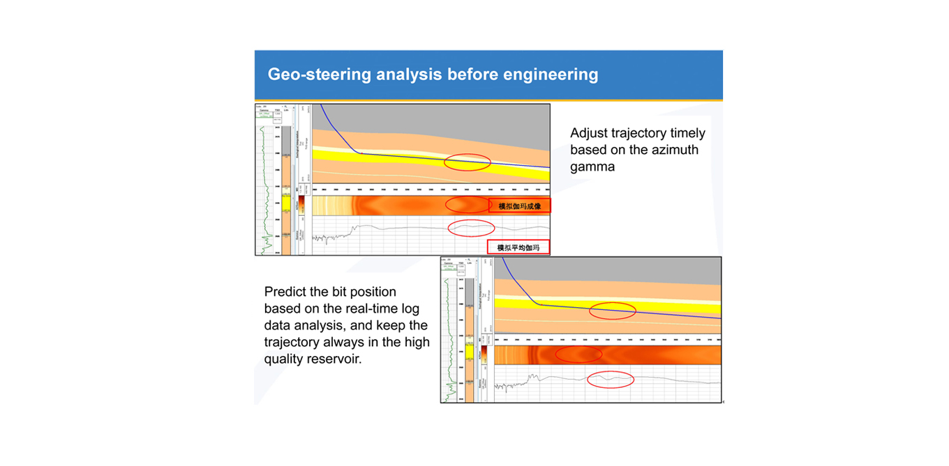 Predicting the bit position based on the real-time log data analysis, and keeping the trajectory always in the high quality reservoir.