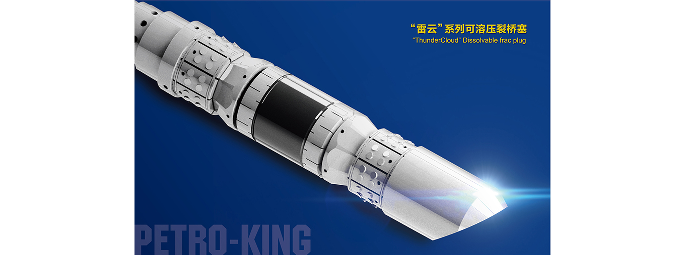 All plug-and- perf operations, will encounter slacking off or presetting during pump-down operation, the risks associated with CT intervention may lead to serious downwhole accidents which are difficulty to handle and need high costs. As a revolutionary new generation frac plug product which is mainly researched and produced by Petro-king, the “ThunderCloud” dissolvable frac plug do not have to be removed with CT-conveyed milling tools; the removing process is fast and simple when it slacking off or presetting, significantly reduce operational risks and costs, save customer time, maximize economic efficiency.
